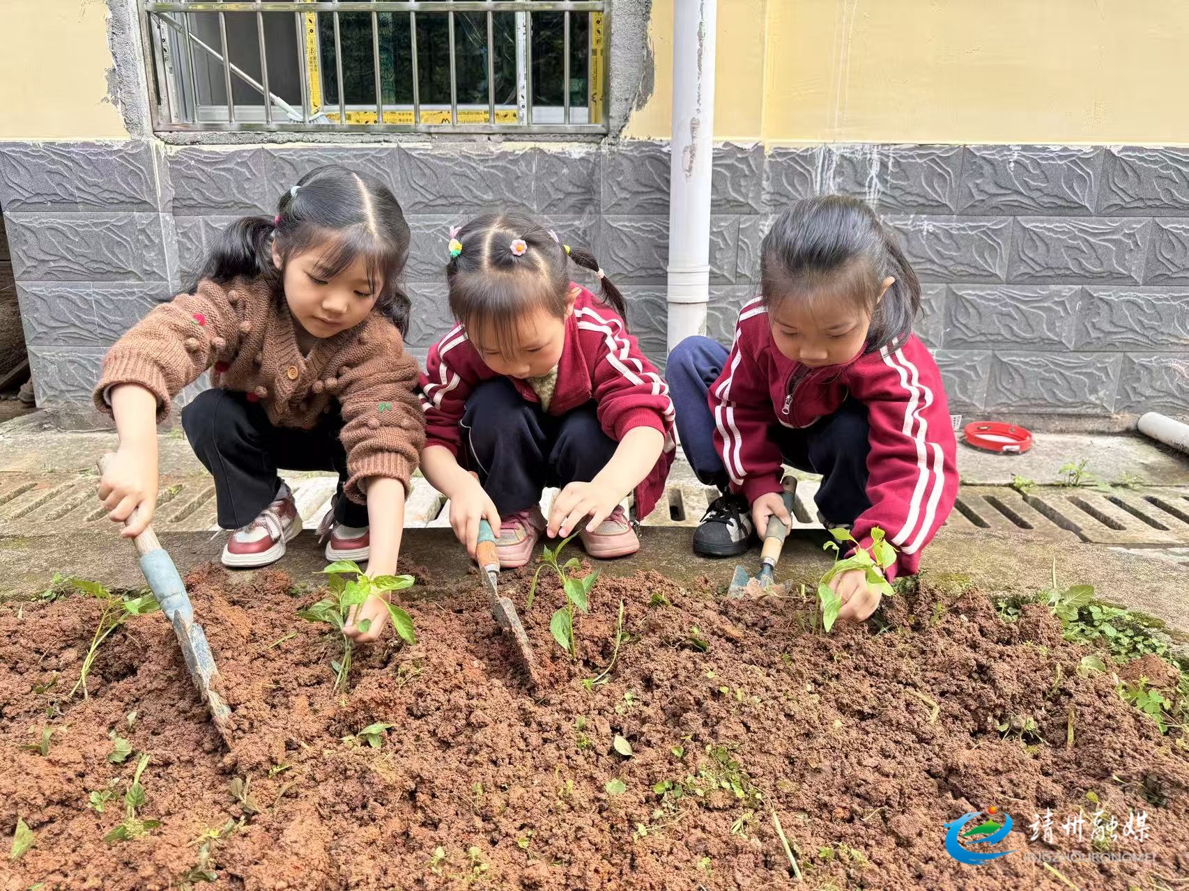 幼儿种植辣椒秧苗(苏珊瑚摄)