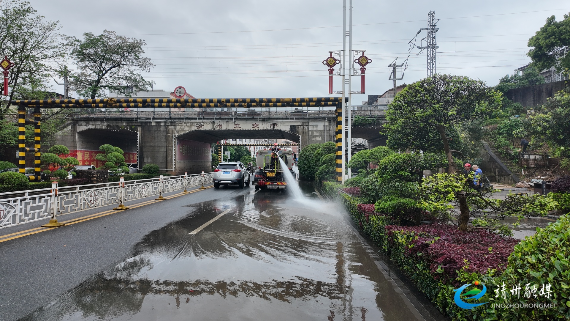 此次强降雨导致城区环城路公交公司、梅林路立交桥等多处路段出现积水,对交通出行造成一定影响。县城市管理和综合执法局组织人员第一时间奔赴现场,重点开展排水清淤、隐患排查和秩序维护工作,加快积水排涝。同时,在现场设置警示标识、拉起警戒线,全面排查积水区域安全隐患,并配合交管部门实施交通管控,引导市民安全绕行。