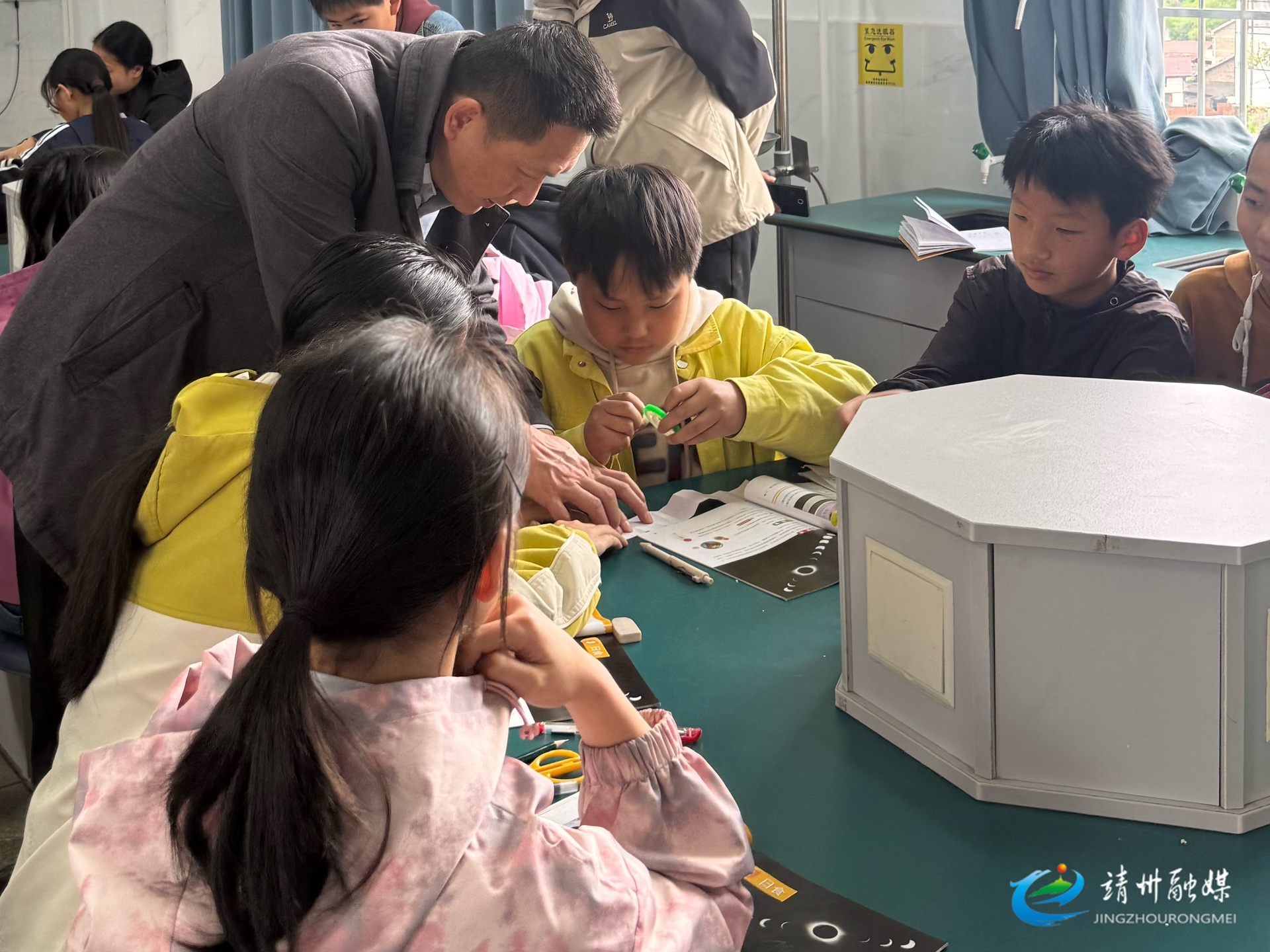 校长冯次华指导学生开展科学实验探究(尹楠芳 摄)