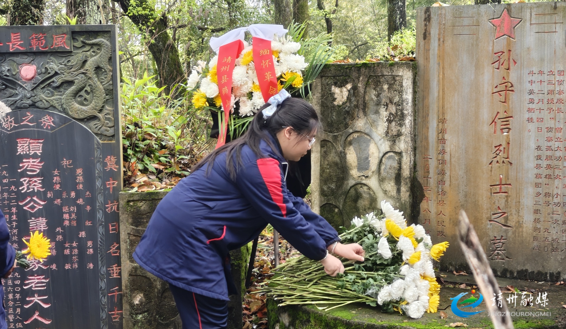 祭扫仪式上,全体师生向孙守信烈士敬献鲜花、集体默哀、行鞠躬礼,表达对革命先烈的深切缅怀与无限敬仰。