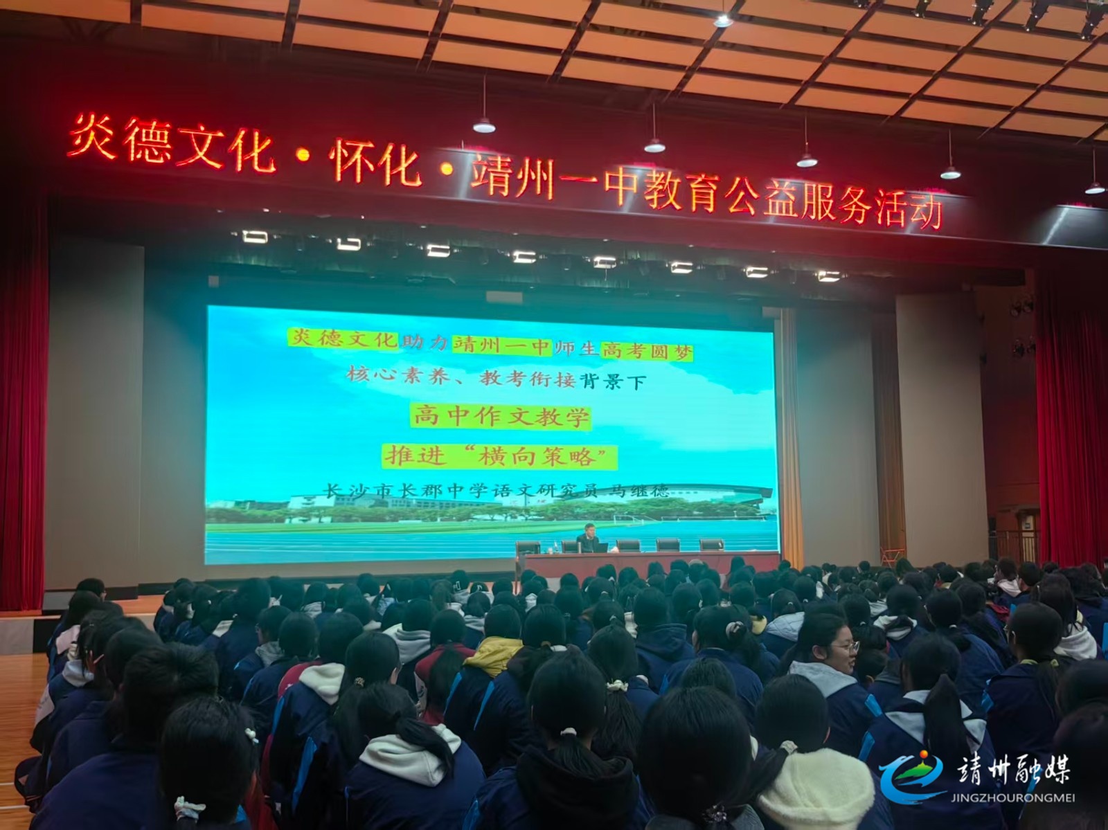 靖州融媒4月3日讯(通讯员 吴霞)4月2日,靖州苗族侗族自治县一中报告厅内座无虚席、氛围热烈,由靖州一中、炎德文化主办,长郡中学语文研究员马继德老师主讲的高考备考公益讲座顺利举行,全校近1500名师生参加。