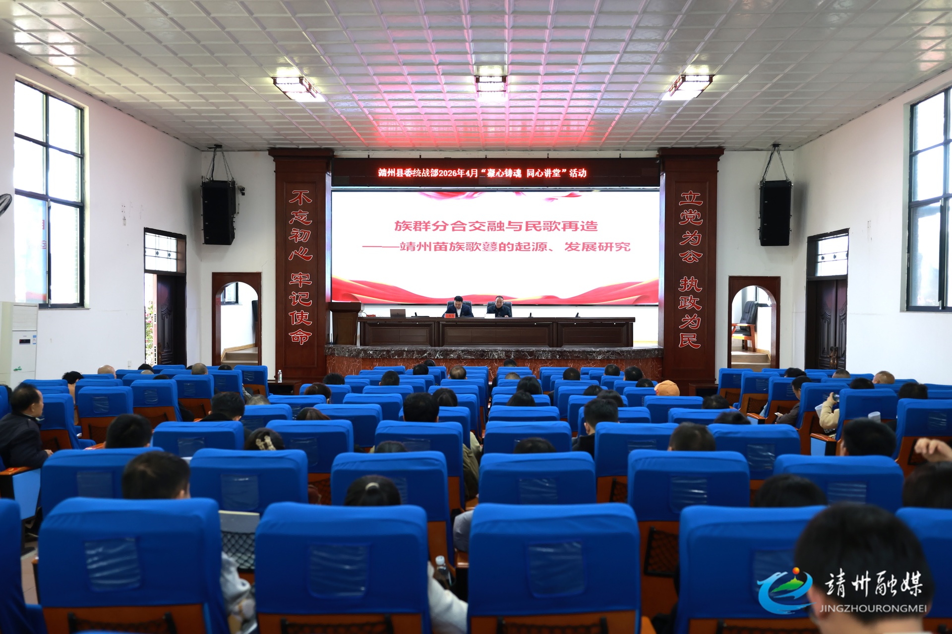 靖州融媒4月4日讯(通讯员 阳仪晗 罗凯露)4月3日,靖州苗族侗族自治县委统战部在县委党校大礼堂,成功举办了当月“凝心铸魂同心讲堂”专题活动。本次活动特邀藕团乡文联主席陆湘之担任主讲,以“族群分合交融与民歌再造——靖州苗族歌鼟的起源、发展研究”为主题,为全县统一战线成员带来了一场精彩的文化专题讲座。