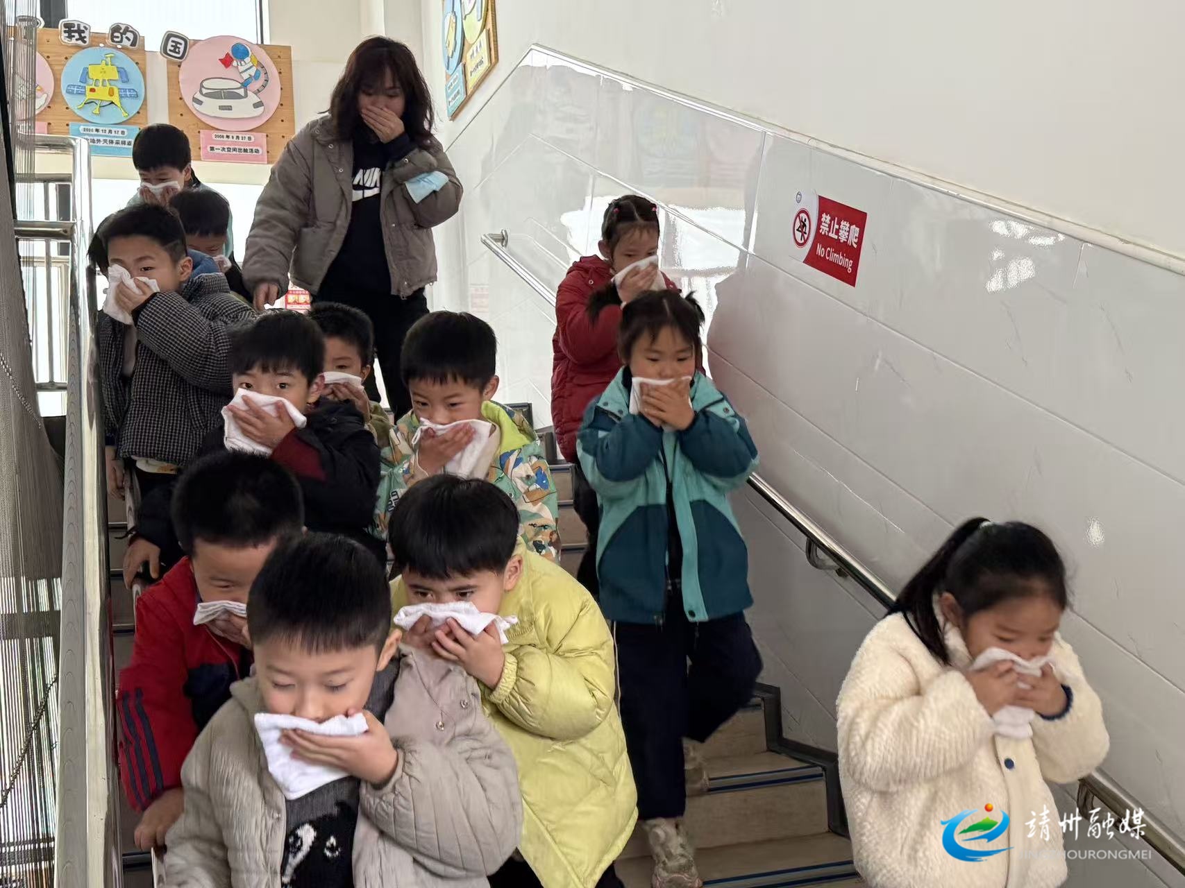 县二幼幼儿用毛巾捂住口鼻逃生(吴琳 供图)