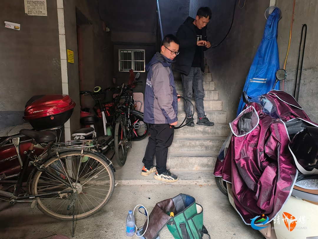 湖南有线靖州网络有限公司维修人员上门为群众排查处理电视信号异常情况(周悦伊 摄)