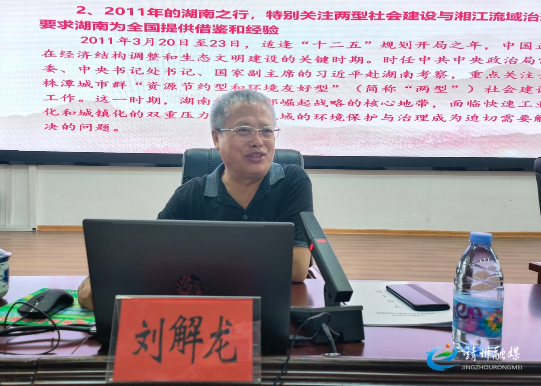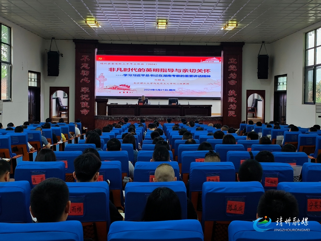 靖州融媒5月22日讯(记者 周悦伊 通讯员 钟欢)5月22日,长沙理工大学马克思主义学院教授刘解龙受邀以《非凡时代的英明指导与亲切关怀》为题,为中共靖州苗族侗族自治县委党校2024年上半年主体班全体学员进行专题授课。