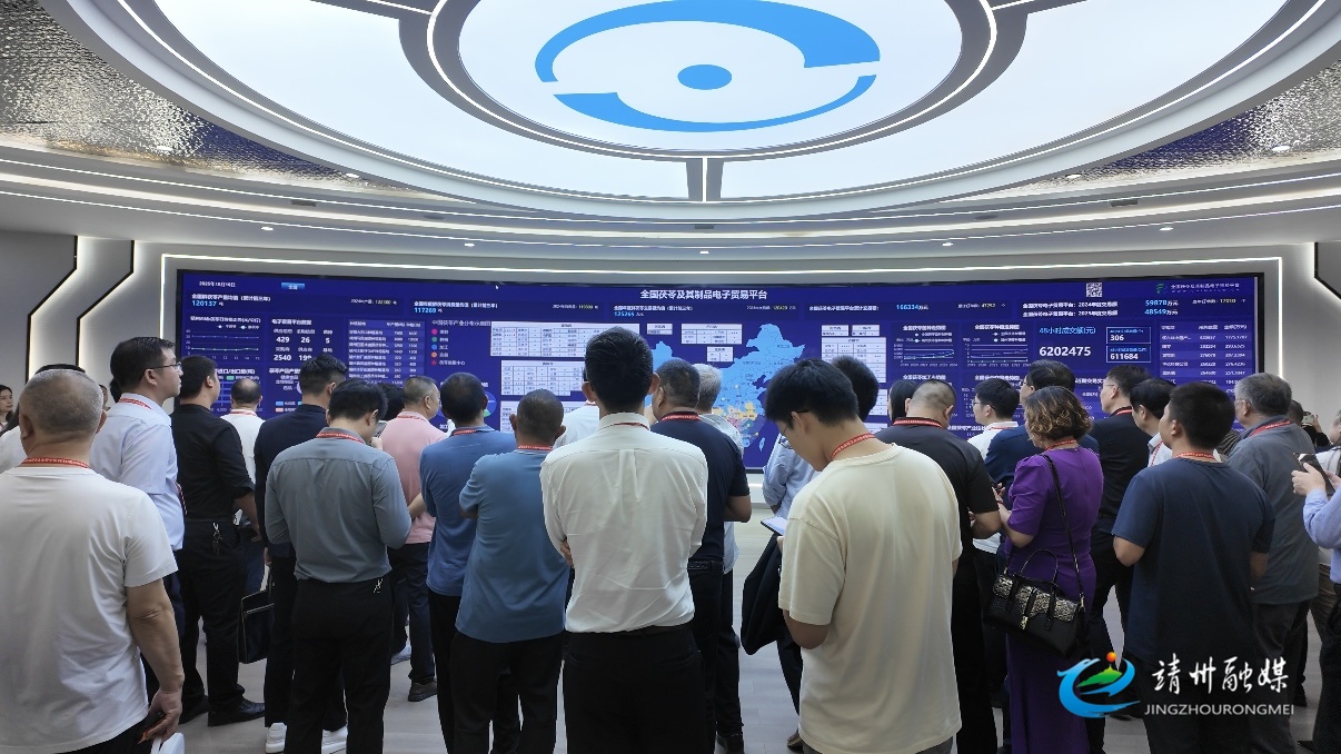 领导嘉宾、专家学者、科研院校及企业、协会代表等实地了解全国茯苓及其制品电子交易平台(孙文月 摄)
