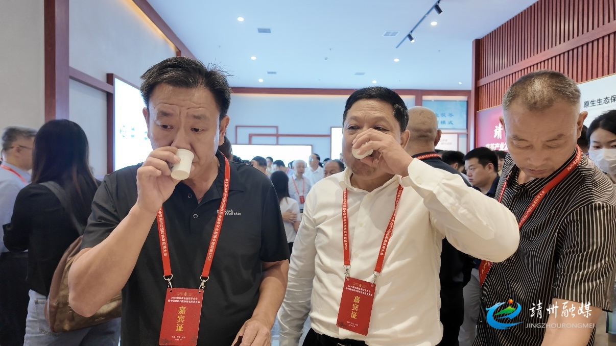 领导嘉宾、专家学者、科研院校及企业、协会代表等现场品尝茯苓咖啡(孙文月 摄)