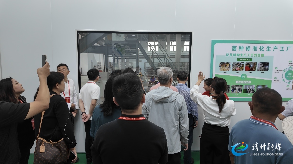 领导嘉宾、专家学者、科研院校及企业、协会代表等在茯苓菌种选育繁殖研发中心参观(孙文月 摄)
