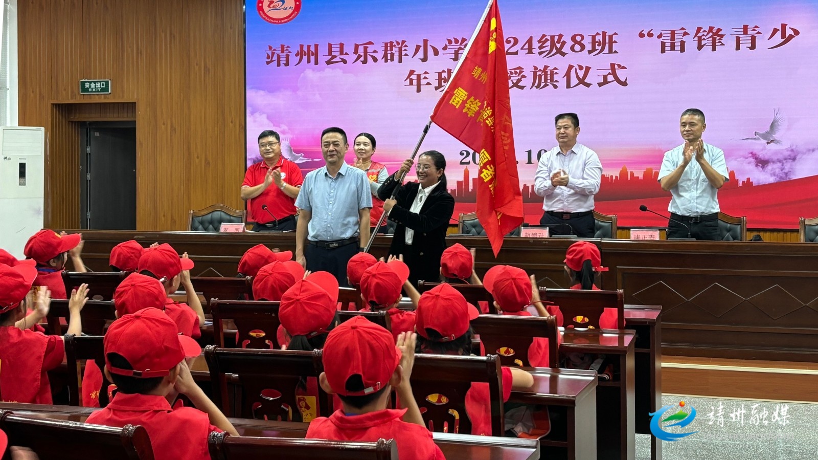 靖州融媒10月16日讯(通讯员 吴顺全 黄透鹏)10月15日,靖州苗族侗族自治县新时代文明实践指导中心授予乐群小学2024级8班“雷锋青少年班”光荣称号,并举行授旗仪式。