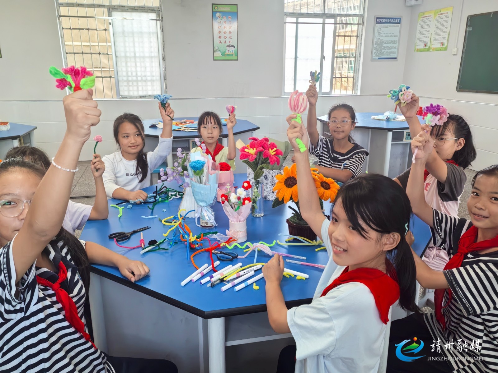 靖州融媒10月12日讯(通讯员 苏鑫宇 张书仪)10月11日,靖州苗族侗族自治县土桥小学开展了一场趣味十足的扭扭棒编花手工劳动课。
