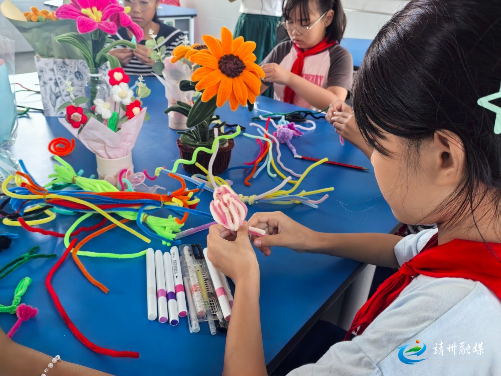 课堂上,同学们化身“创意花艺师”,借助扭扭棒开启花艺创作之旅。他们通过扭转、卷曲、调整等步骤,让花朵雏形渐显,还尝试叠加花瓣打造立体效果,搭配绿色扭扭棒,一束束特色花束陆续成型,同学们手持作品喜悦之情溢于言表。