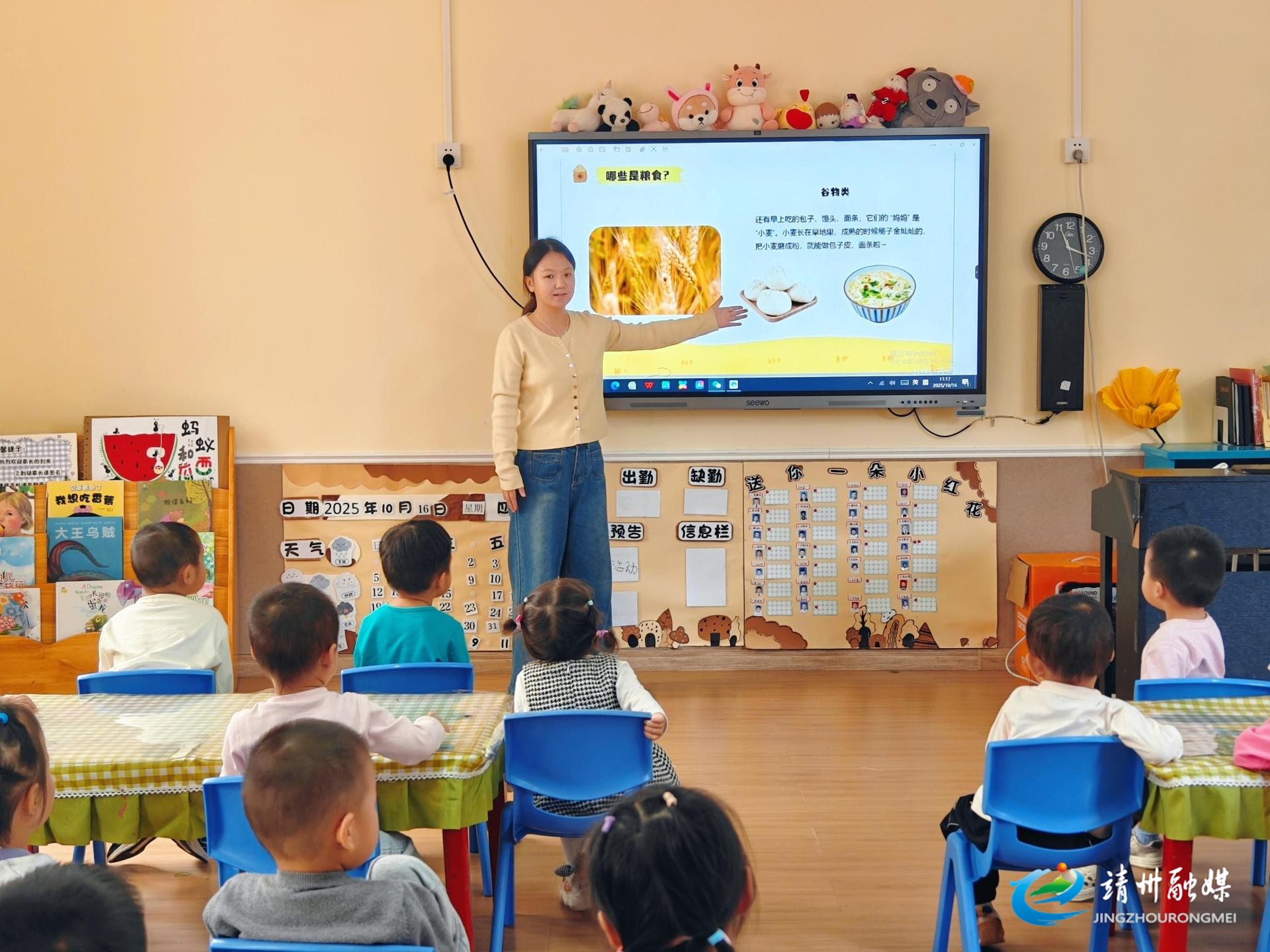 县幼儿园开展“量‘粒’而行 不负好‘食’光”主题活动。教师通过播放视频、PPT、讲故事等形式,向幼儿讲解世界粮食日的由来与粮食的重要性,并让幼儿辨识粮食作物,讲解农民耕种辛苦,树立 “光盘小达人” 意识。