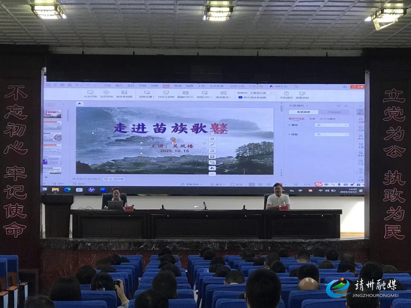 靖州融媒10月17日讯(通讯员 罗金 林蓉)“杨梅杨,杨梅杨,生在路边逗人尝......”10月15日,国家级非物质文化遗产——苗族歌鼟走进中共靖州苗族侗族自治县委党校主体班课堂,80余名参训干部“零距离”触摸民族文化根脉。