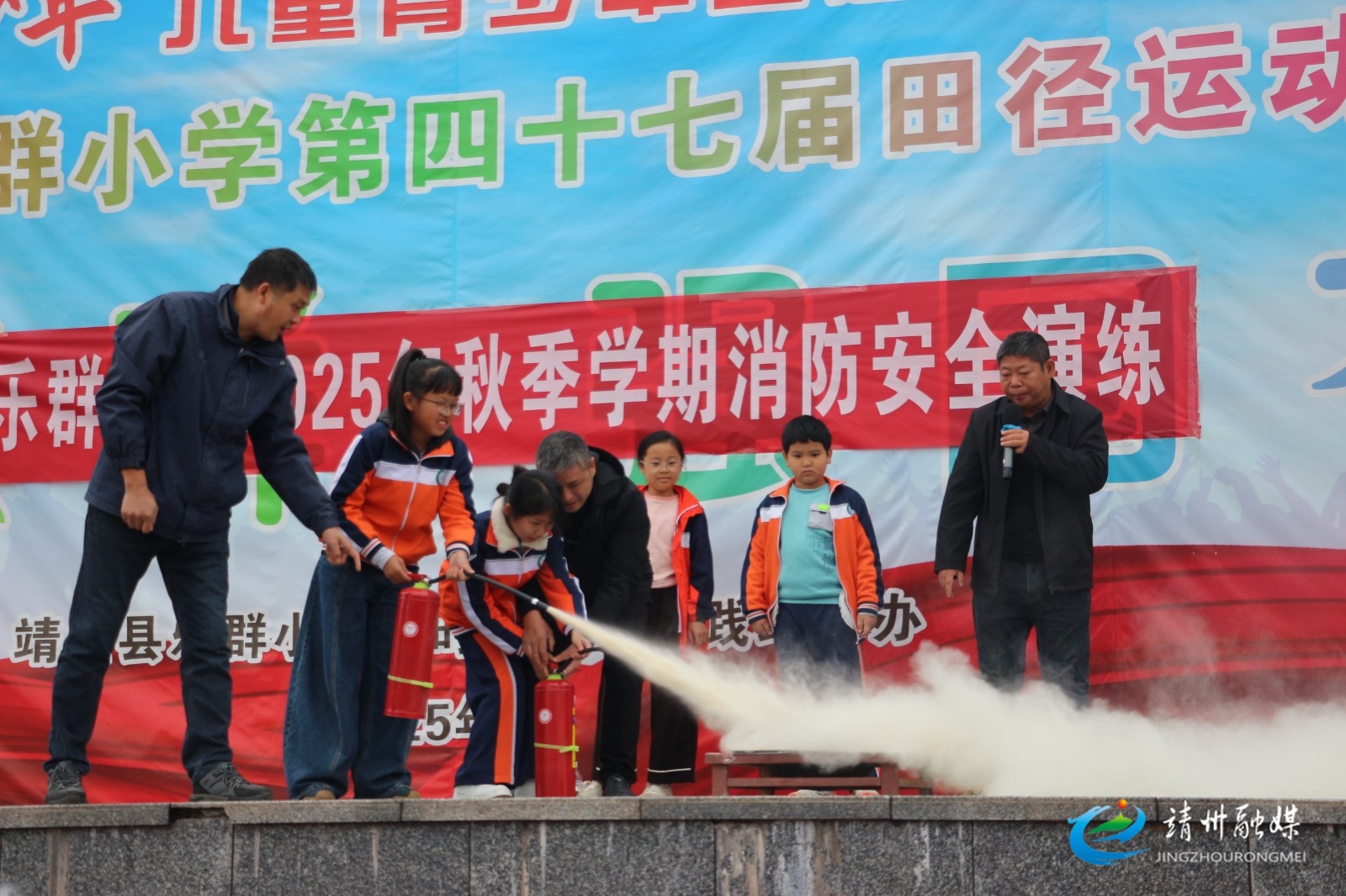 靖州融媒10月23日讯(通讯员 吴顺全)10月23日,靖州苗族侗族自治县乐群小学组织全校学生开展防火防震防踩踏安全疏散演练。演练中,该校学生快速有序撤离至操场安全区域后,安全员现场讲解应急避险知识,演示灭火器使用方法并现场邀请学生代表上台操作,强化了师生们的安全意识。