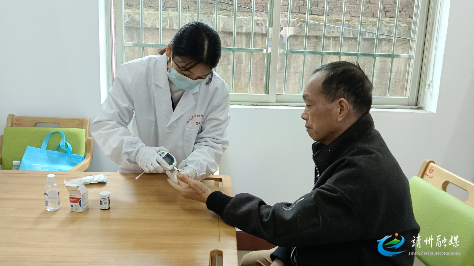医务人员正在给社区居民测血糖(夏源懋 摄)
