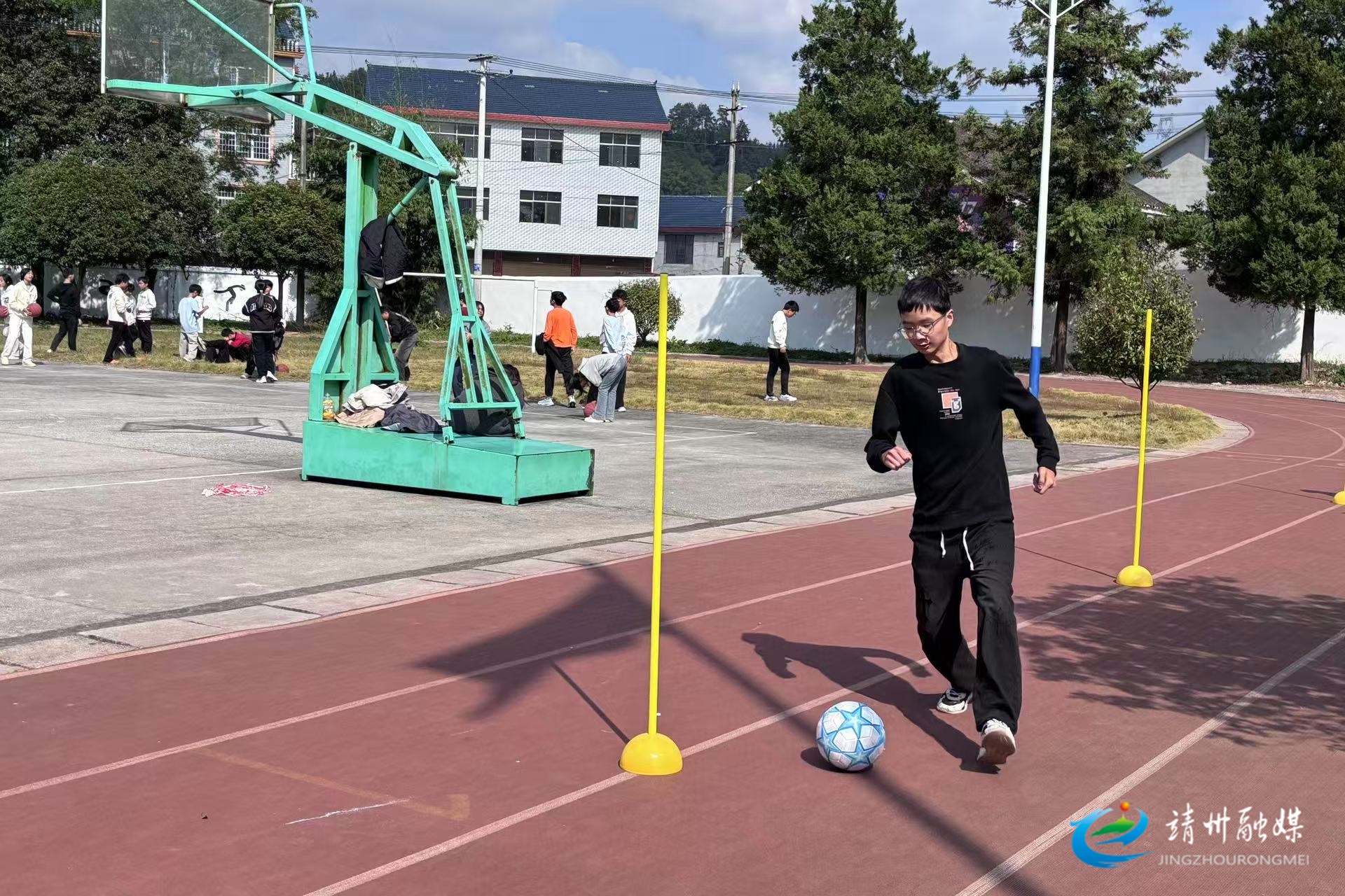 绿茵场上,足球小将们带球灵活地穿梭于标志杆之间,脚下技术娴熟,展现了良好的球感与协调性。篮球场上,则上演着速度与激情的场景,学生在折返跑动中完成运球、传球和投篮,动作一气呵成。排球场内,学生围成一圈,默契垫球、传球,白色的排球在空中划出一道道优美的弧线,体现出团队协作的精神。