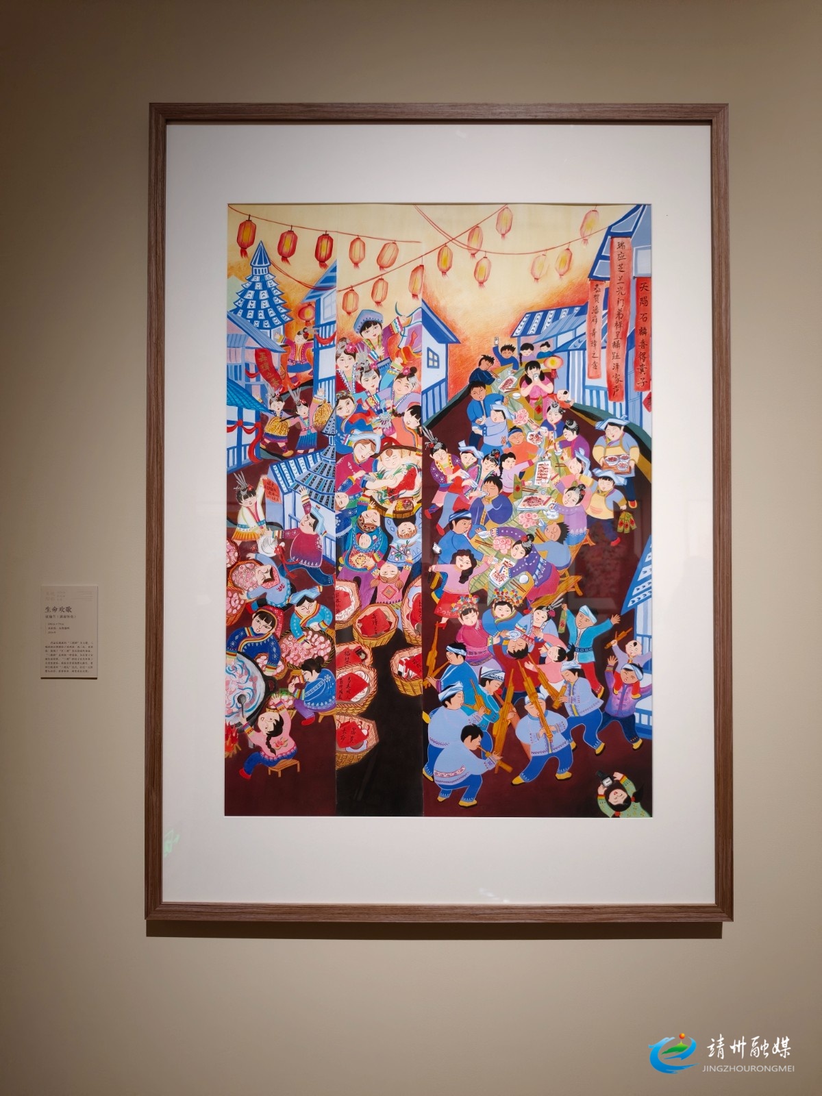 靖州融媒10月28日讯(靖州文化馆 供稿)为推动优质文化资源向基层延伸,繁荣乡村文化,培育文明乡风,助力乡村全面振兴,10月28日,由文化和旅游部公共服务司与中国国家博物馆共同主办的“大地绘彩——2025年农民画大展”在中国国家博物馆举行。靖州苗族侗族自治县文化馆副馆长张瑜兰的作品《生命欢歌》从全国千余件投稿中脱颖而出,成功入选展览。