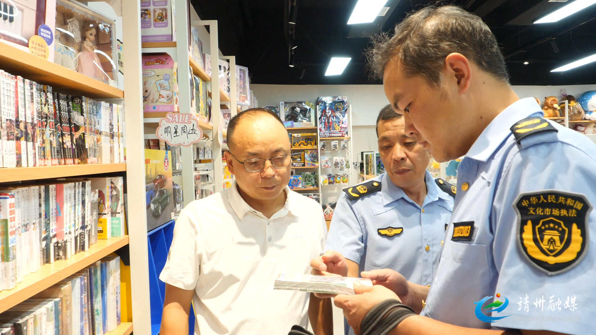 工作人员在经营场所检查所售出版物是否合规(孙文月 摄)