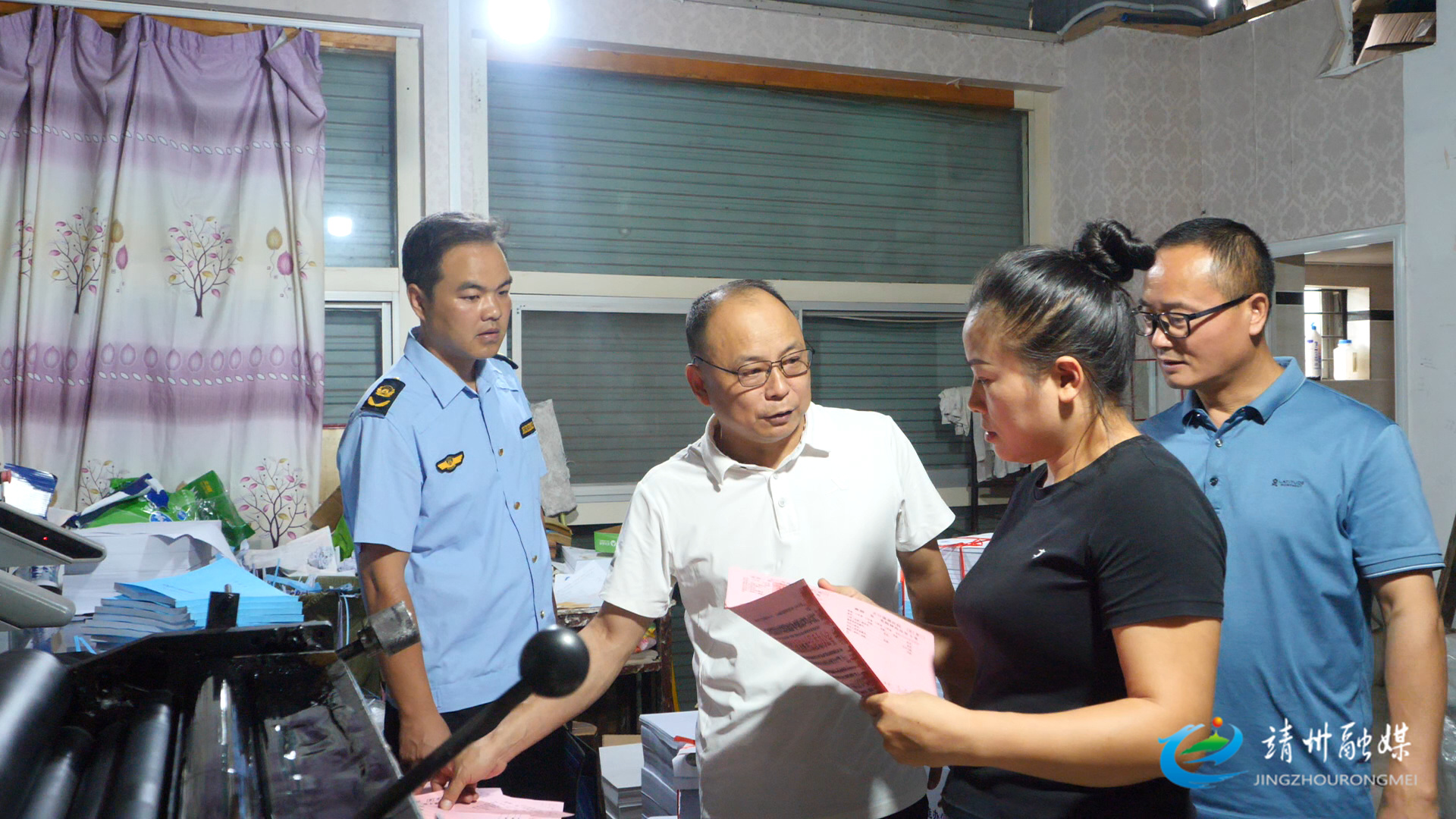 工作人员在华月彩色印刷厂检查印刷品是否合规(孙文月 摄)