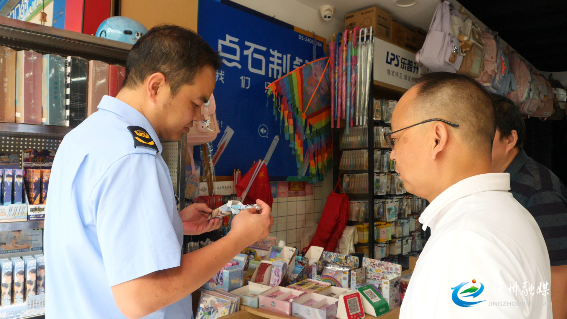 工作人员在经营场所检查商品是否合规(孙文月 摄)