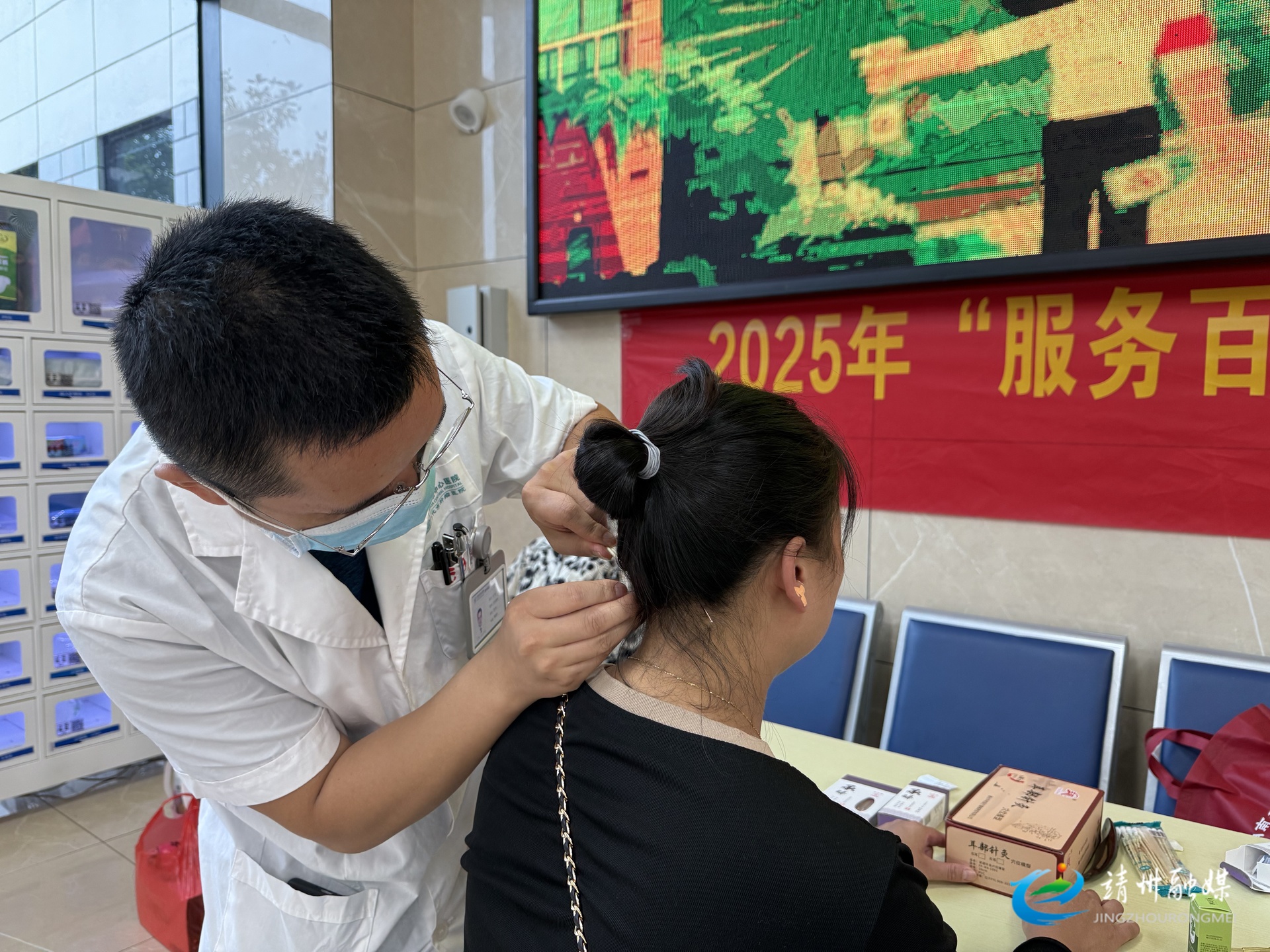 此外,义诊区也是人气十足,市民有序接受量血压、测血糖等义诊服务,体验耳穴疗法、针灸、刮痧等中医特色疗法,并由医务人员为市民一对一评估身体状况,推荐调理方案,讲解保健知识。