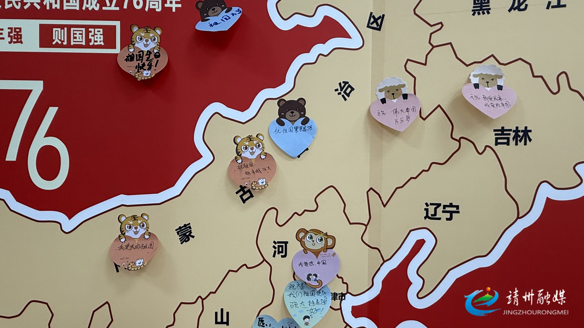 祈福签到区贴满了市民对祖国的美好祝福(孙文月 摄)