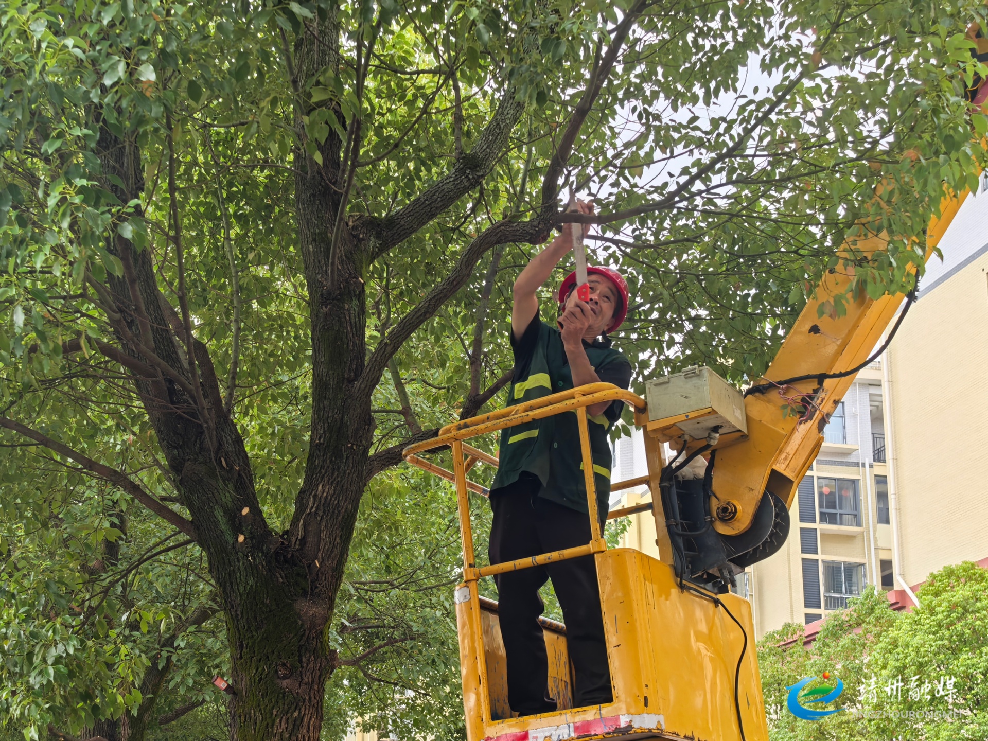 上午9点,诚州路作业现场,几名园林工人手持工具,依照“因树修剪、因形施策”原则,借助高空作业车、绿篱机等专业设备,对行道树和绿篱进行精细化修剪。作业中,园林工人严格落实安全规范,设置警示标识、采取防护措施避免影响市民通行,并同步开展绿化巡查,对苗木倒伏、设施损坏等问题及时处置。