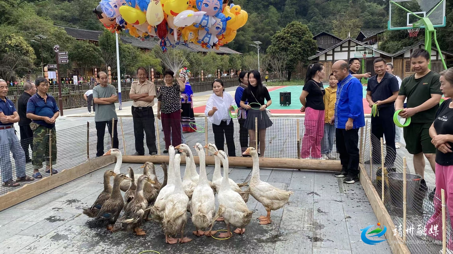 地笋苗寨开展套大鹅活动(张秦 摄)