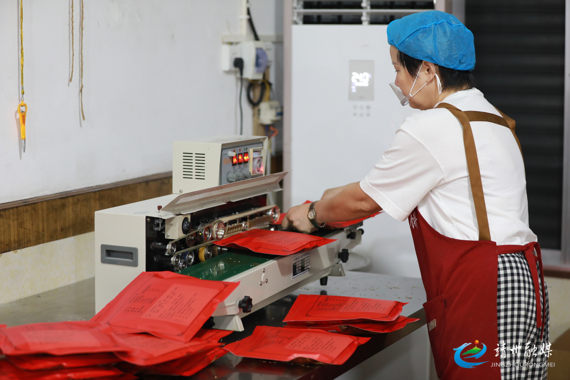 工作人员忙着给月饼包装过塑(胡耀文 摄)