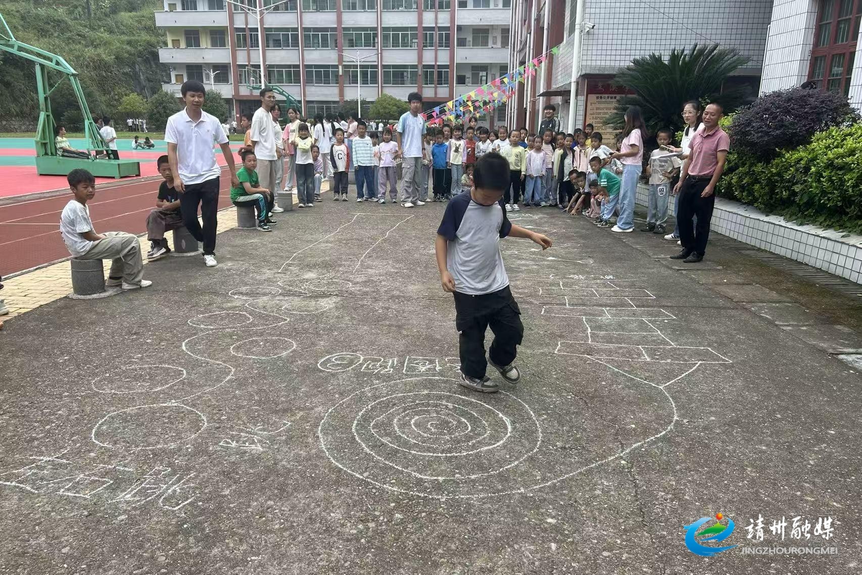 文溪学校的学生正在进行跳房子比赛(王冰清 摄)
