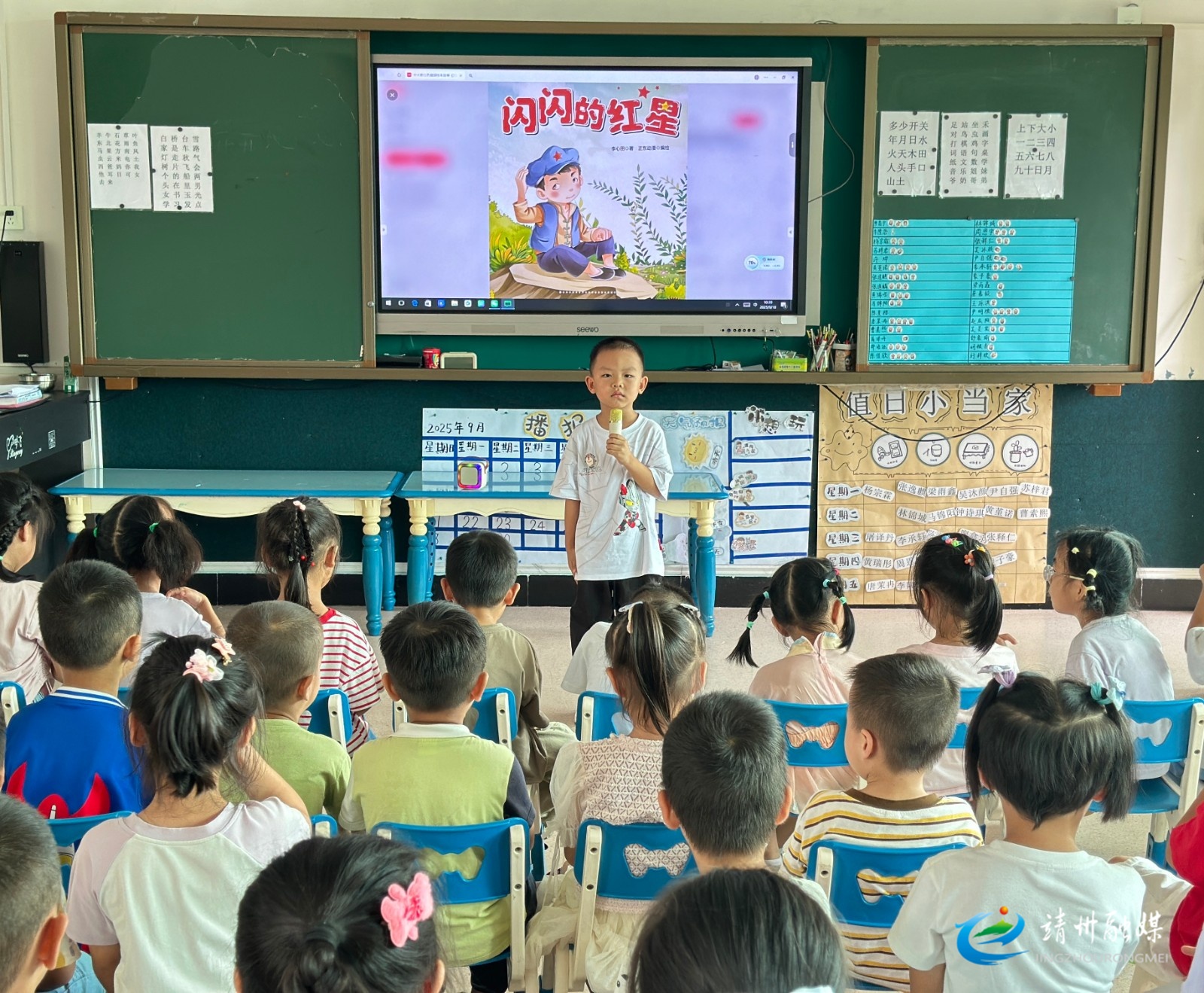 大班幼儿正在讲述红色故事《闪闪的红星》(谭唱 摄)