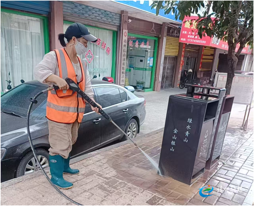环卫工人对垃圾箱进行清洁(肖化贵 供图)