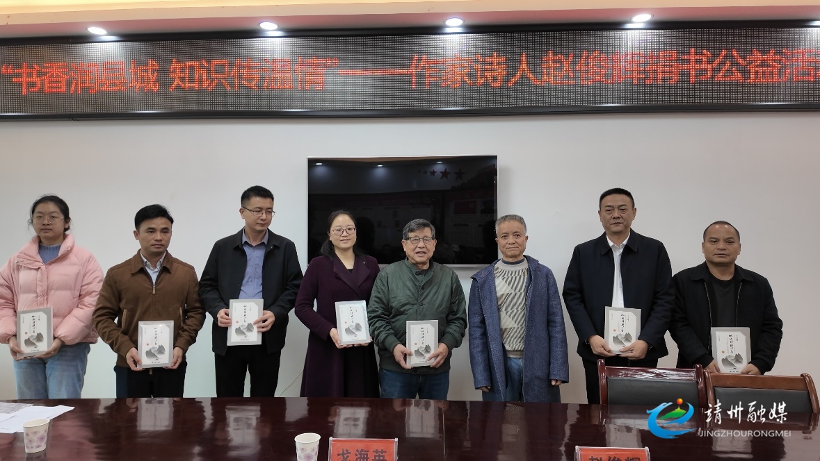 靖州融媒11月6日讯(记者 孙文月)11月5日,“书香润县城 知识传温情”《赋语诗韵心音》捐赠交流座谈会在靖州苗族侗族自治县文化旅游广电体育局会议室举行。湖南省作家协会会员、2023年《全国十佳辞赋家》、靖州籍游子赵俊辉向家乡32家单位及个人捐赠个人诗文专集,以乡恋为桥为当地文化教育赋能,为旅游宣传添彩。