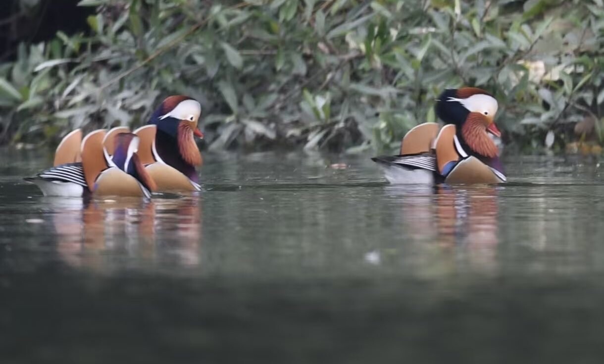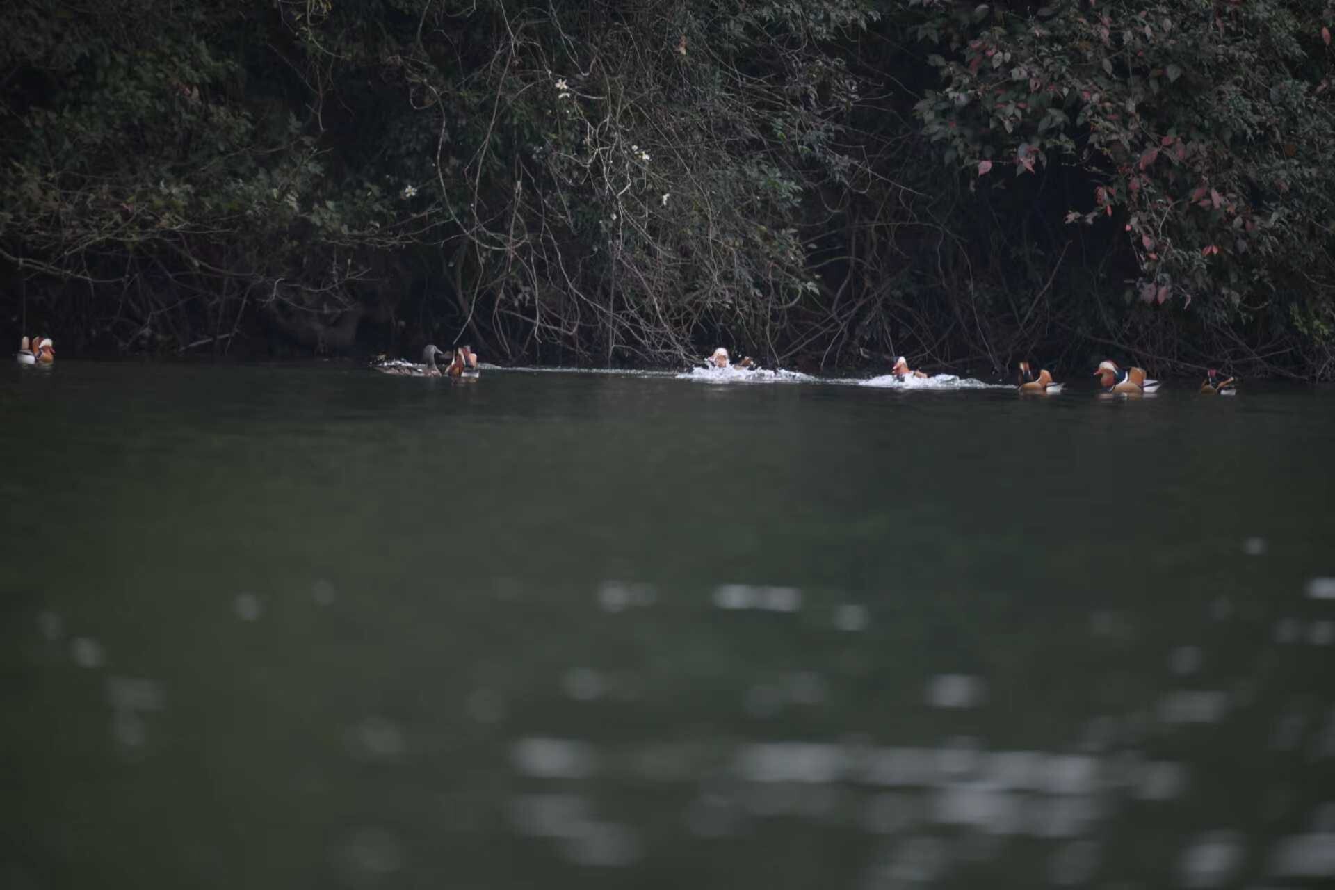 据悉,生态监测活动是湿地公园事务中心的常规工作,监测人员利用渡船行至新江村段时,远远便望见水面色彩斑斓,经过专业设备观察确认,正是素有“水中凤凰”美誉的鸳鸯。经初步统计,在此栖息的鸳鸯数量达数十对,规模为近年来罕见。