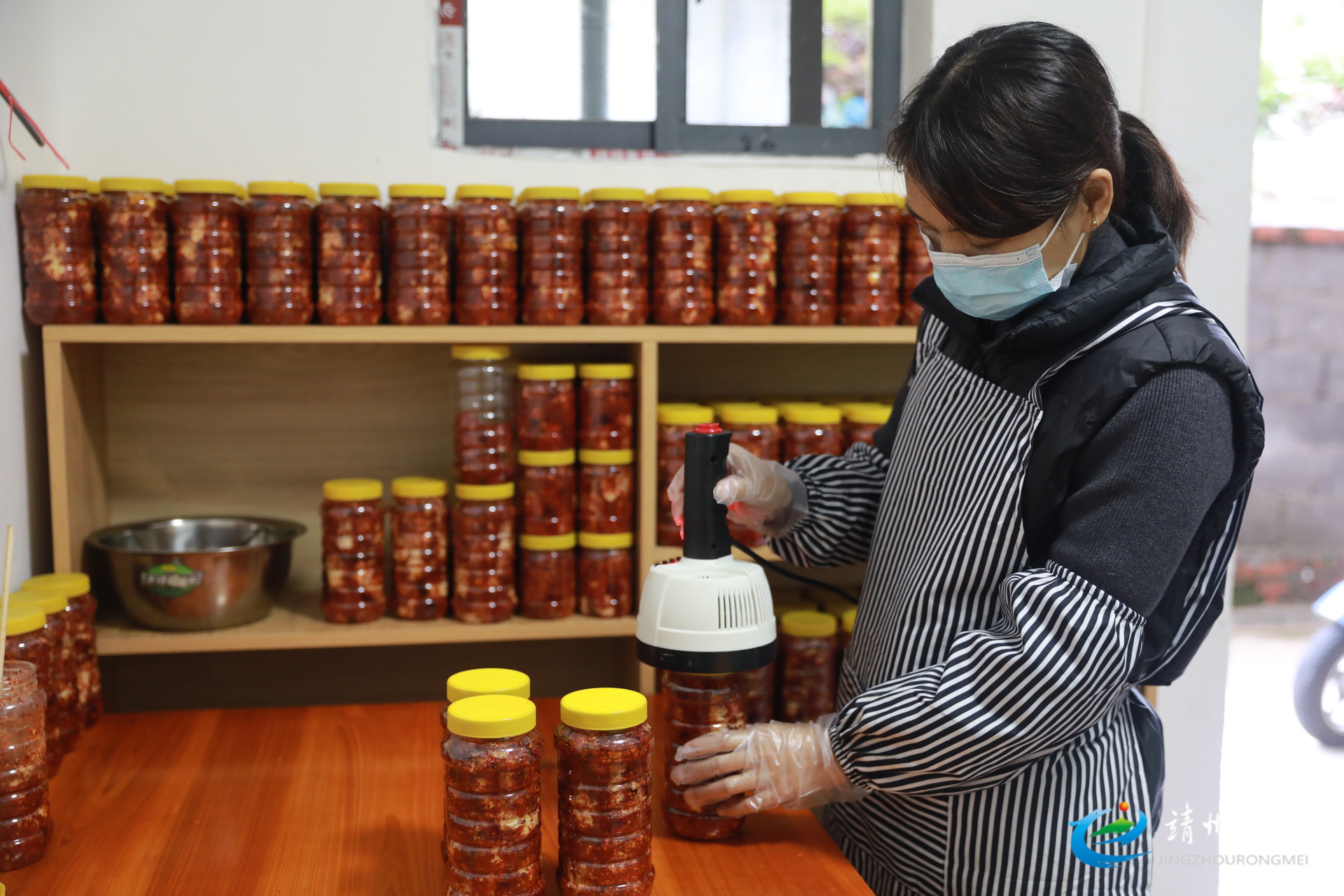 王文婷正在给装好的霉豆腐进行密封(钦苏芬 摄)