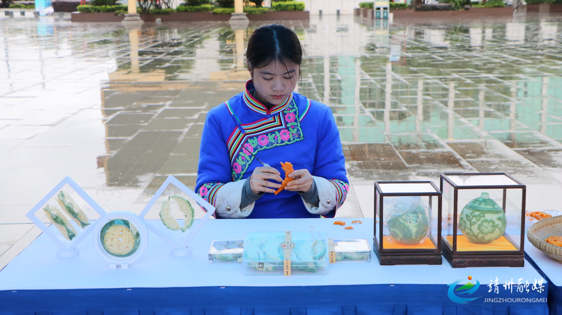 在特色产品展示区,参赛选手和观众还可以现场品尝靖州特产,体验雕花蜜饯、茯苓糕等非遗制作流程。