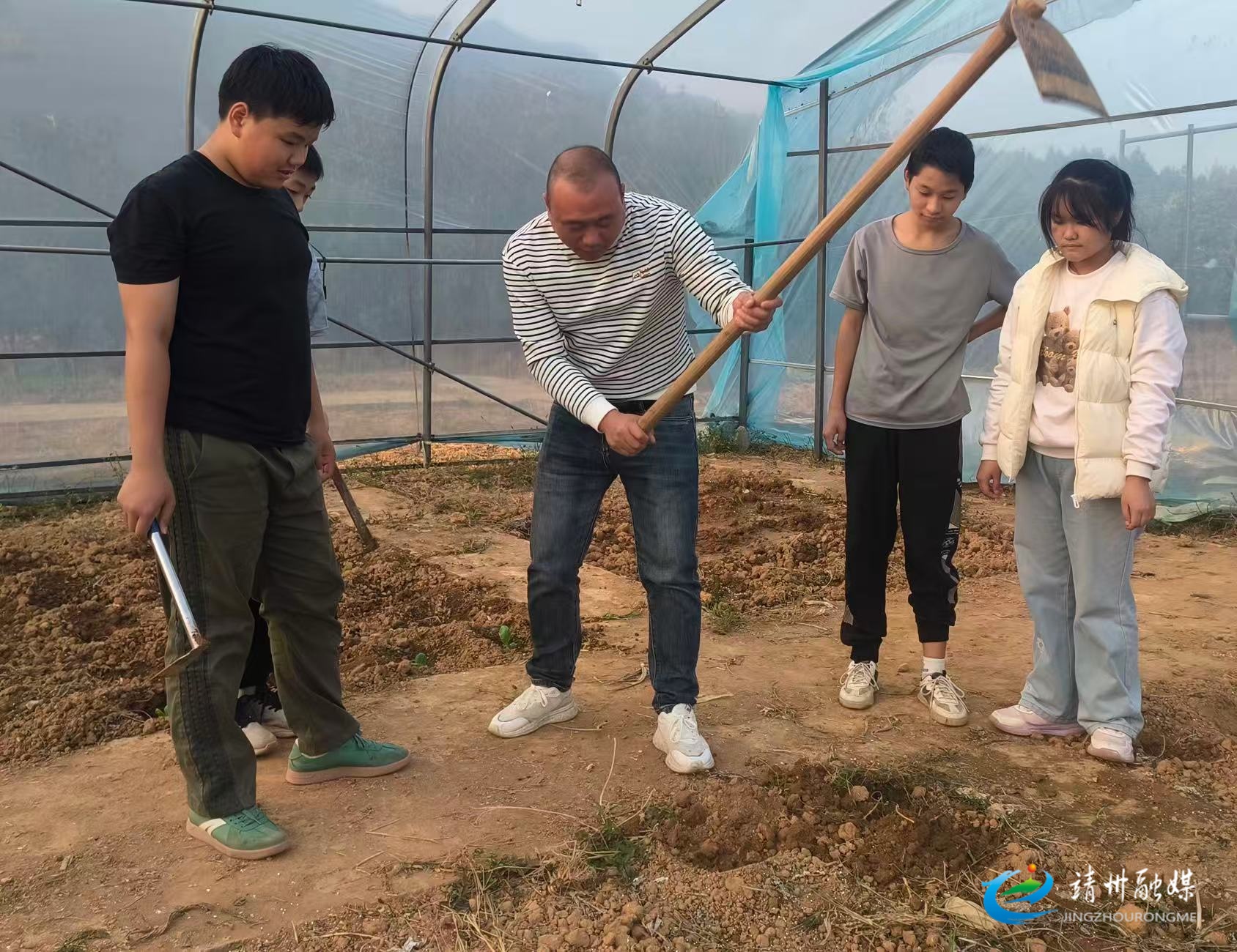横江桥中学党员教师耐心指导学生种植蔬菜(吴吉成 摄)