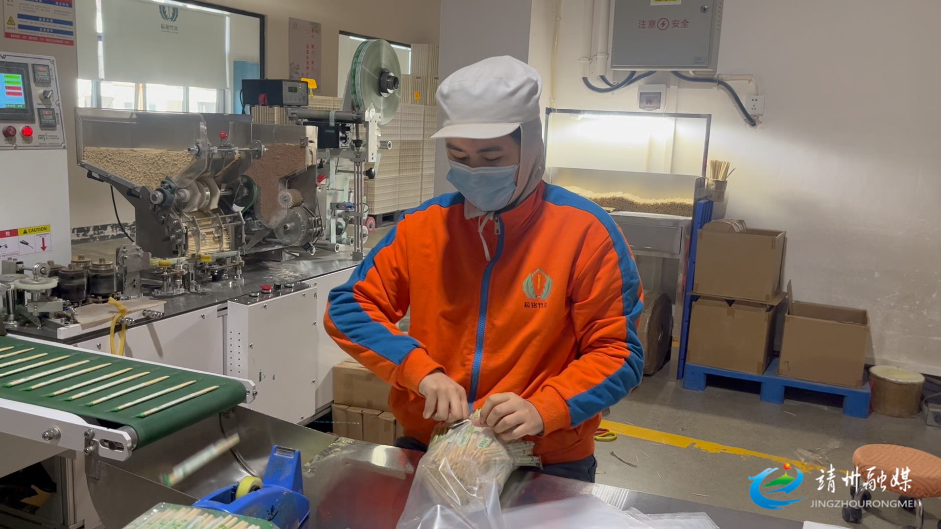员工袁利群正坐在打包台前,双手灵活地打包着竹筷,目光专注而认真,动作娴熟而利落。在辰铭工作3年,袁利群已经从一名普通的产线工人成长为生产主管。