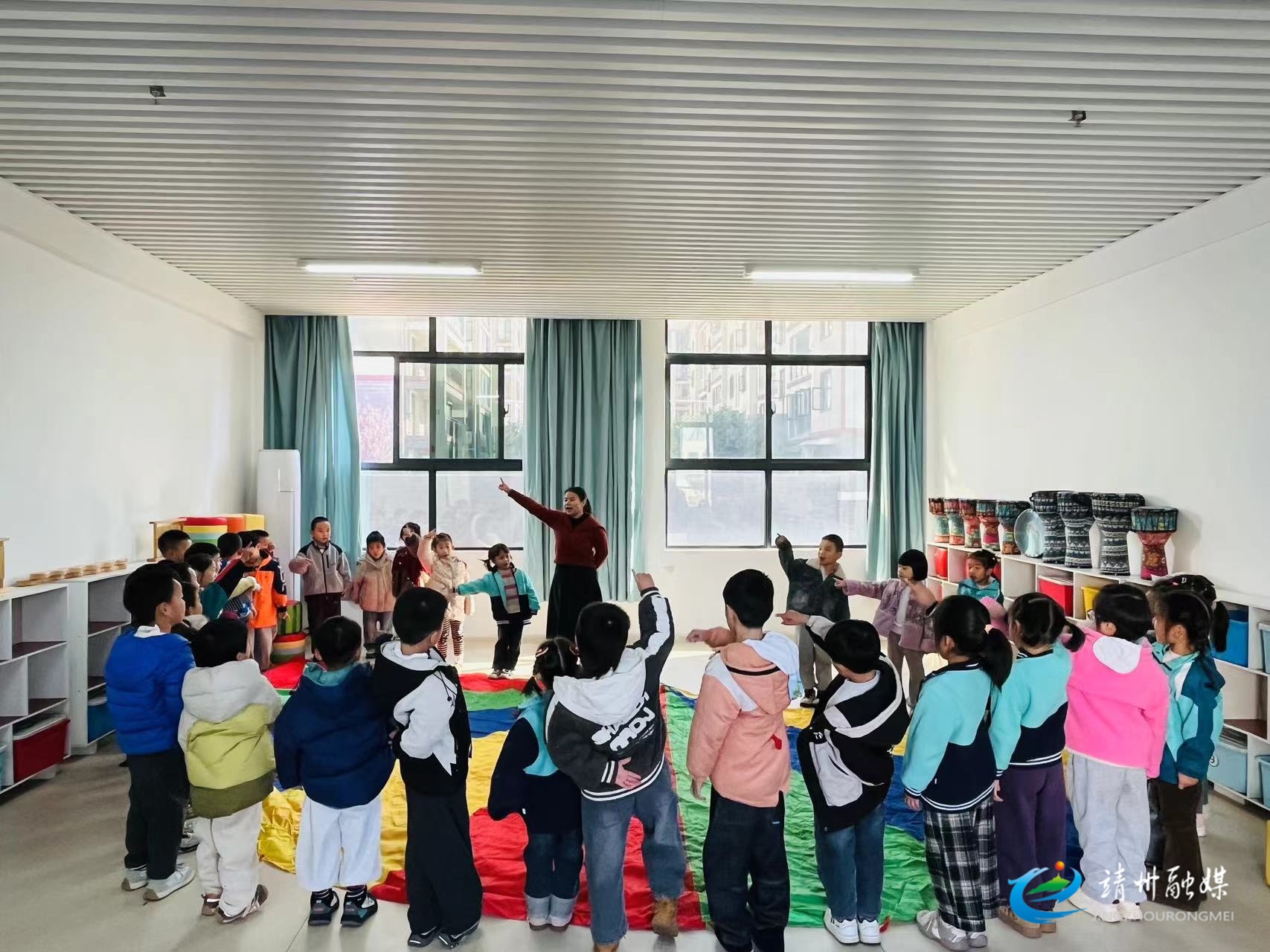 教师带领幼儿学习音乐(夏娟 供图)