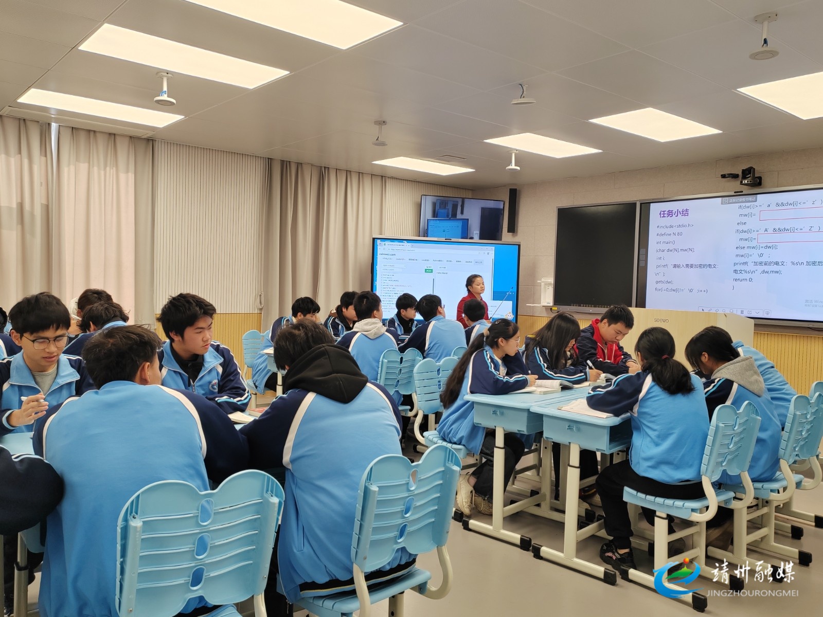 活动中,英语组周丹教师以饱满的热情、巧妙的教学设计讲解《Travel》课,学生互动不断,让语言学习趣味盎然;计算机组梁娟教师以创意导入为切口,巧妙引领学生走进《电文加密算法分析》的知识世界,让抽象的技术原理变得直观易懂;机电电子组李昀珊教师凭借趣味十足的课件设计与沉浸式教学引导,让《二极管单向导电性的探究》充满吸引力。